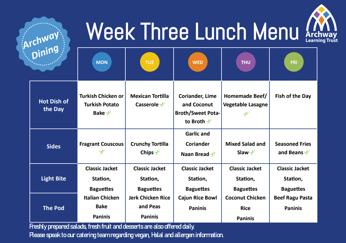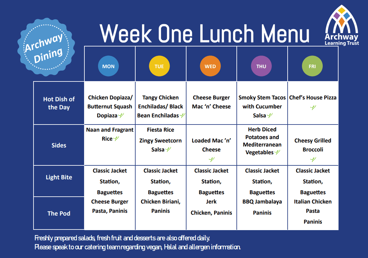 Parents can be reassured that the maximum they will need to pay, per child, per day, is £2.60 for breakfast, a two-course lunch and some fruit, which we believe represents excellent value for money. This also allows parents to manage their household budgets. To ensure that we are giving students a balanced meal, we don’t allow students to make additional purchases, or purchase puddings only. Students on free school meal will have full access and the same choices as all students, and our till systems mean that children are never identified as being in receipt of free school meals.