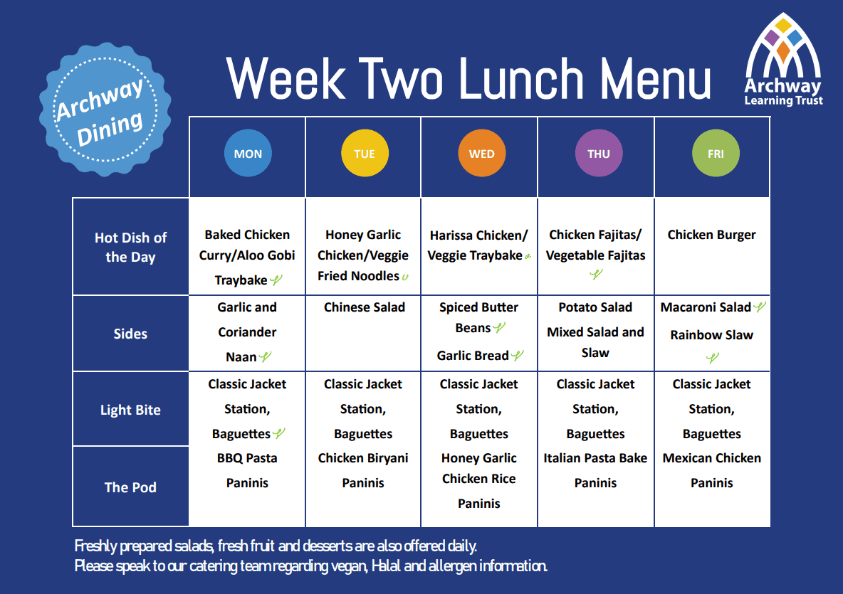 We have worked hard to avoid in year price increases; however, the cost of raw ingredients has risen to such an extent that we have no choice but to pass on an element of this to parents in the new academic year. The two course lunch was £2.40 and is now £2.60. The meals will continue to be freshly prepared in our kitchens with a focus on fresh, seasonal sustainable ,ingredients, ensuring all students have access to a free portion of fresh fruit every day, so if you or your child does chose to eat with us they will be offered a balanced and nutritious meal.