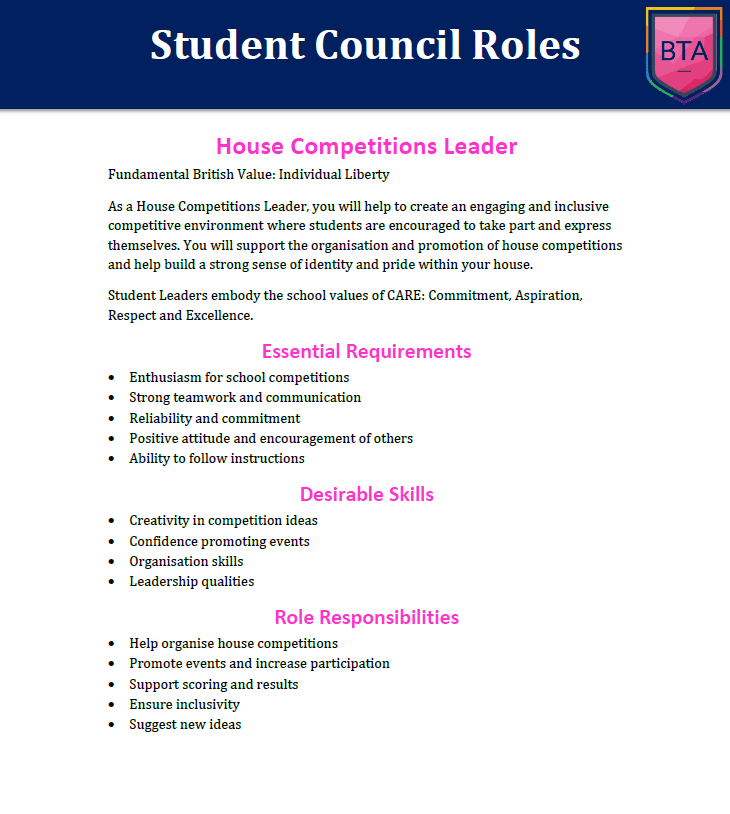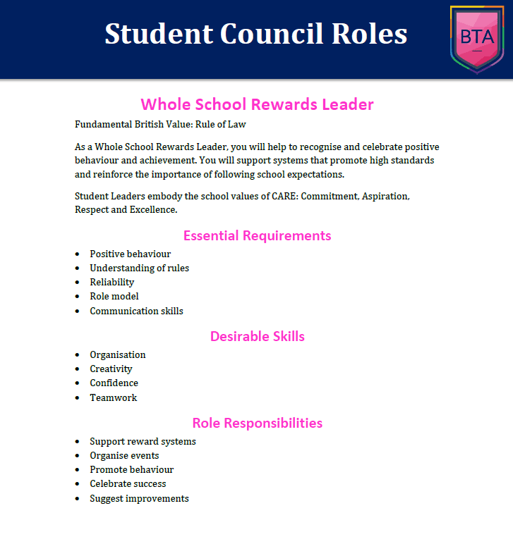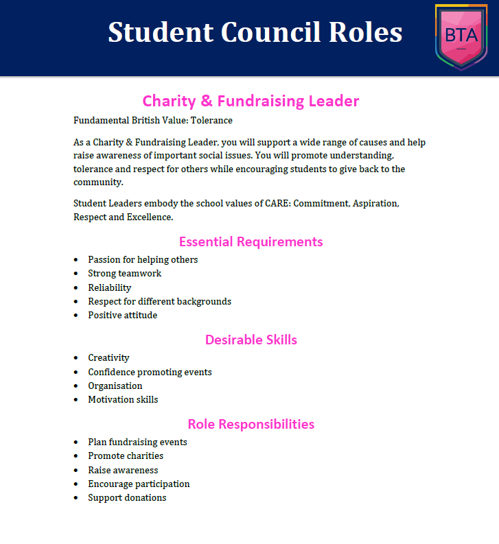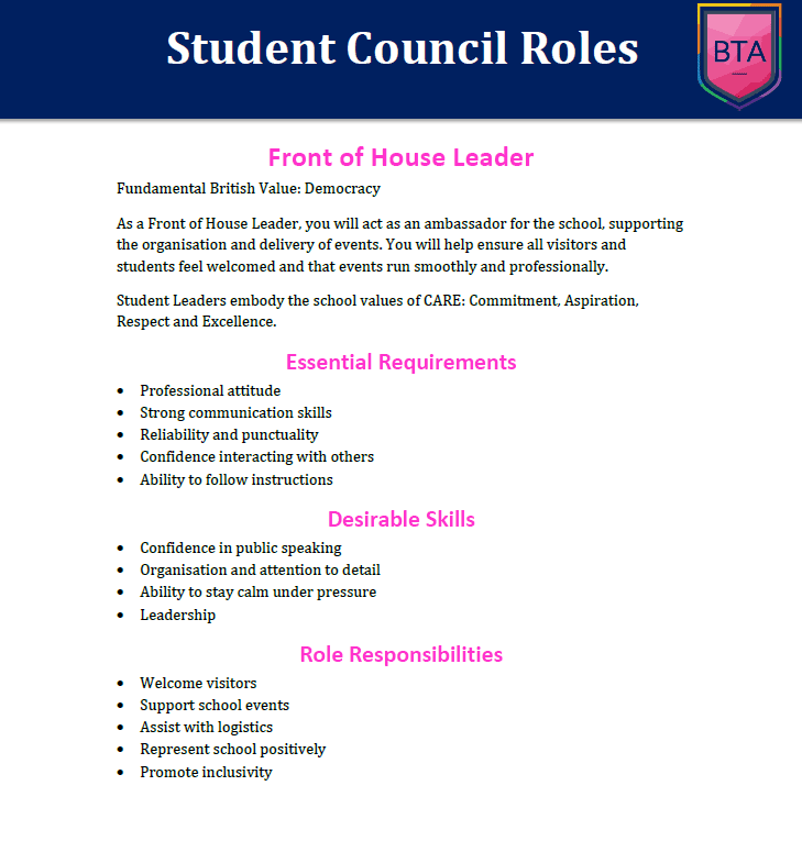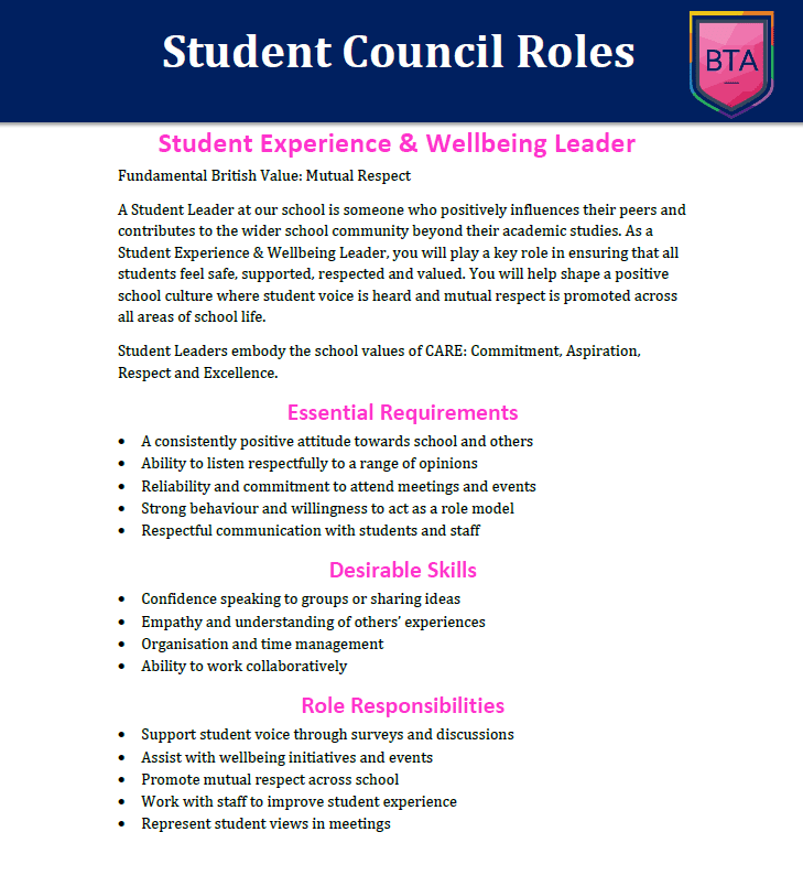 Student Ambassadors at Bluecoat Trent Academy value their roles in our school community, as referenced below: